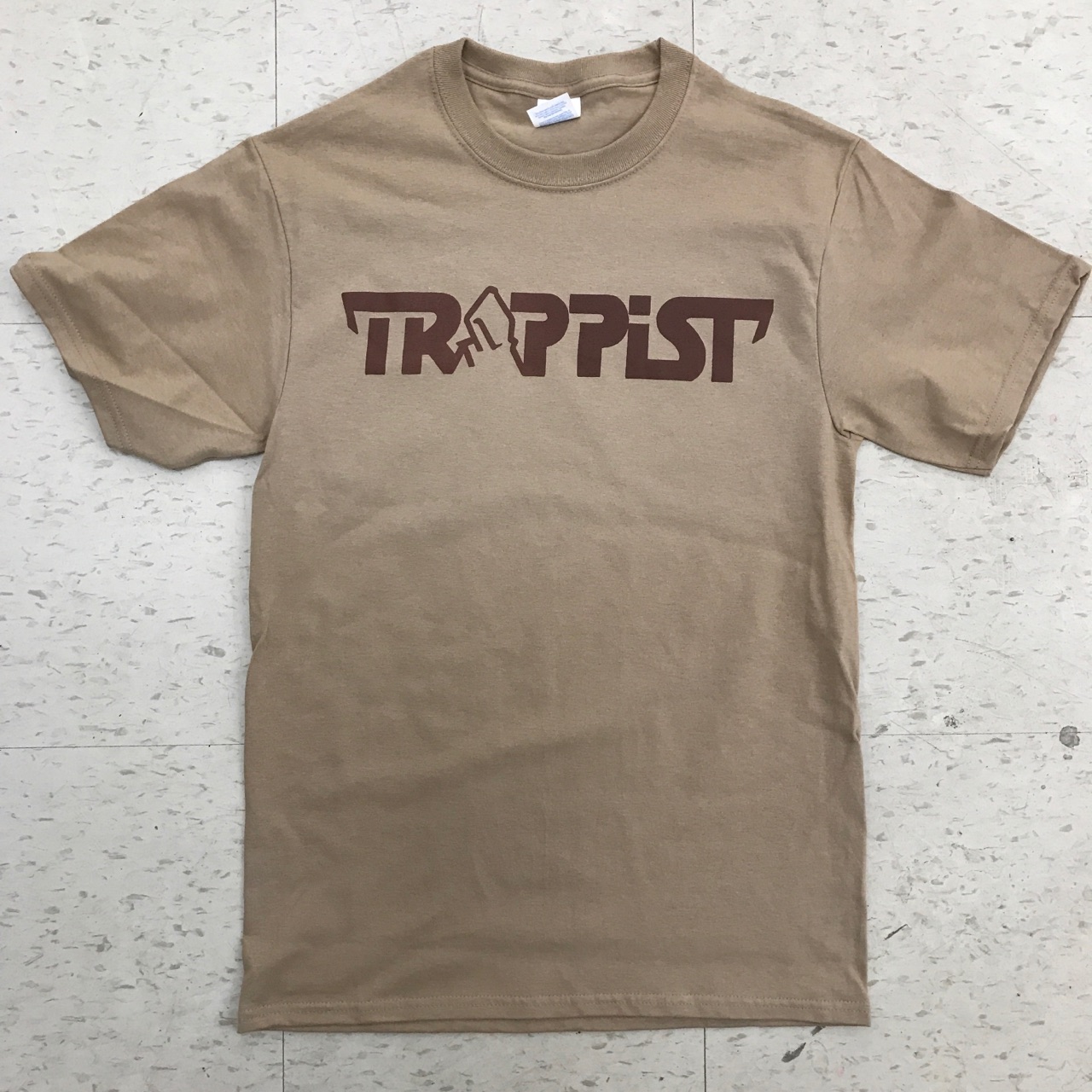 New Trappist shirt design that is non black for all you fans of those types of shirts. Tan(ish) shirt with white logo from the future.