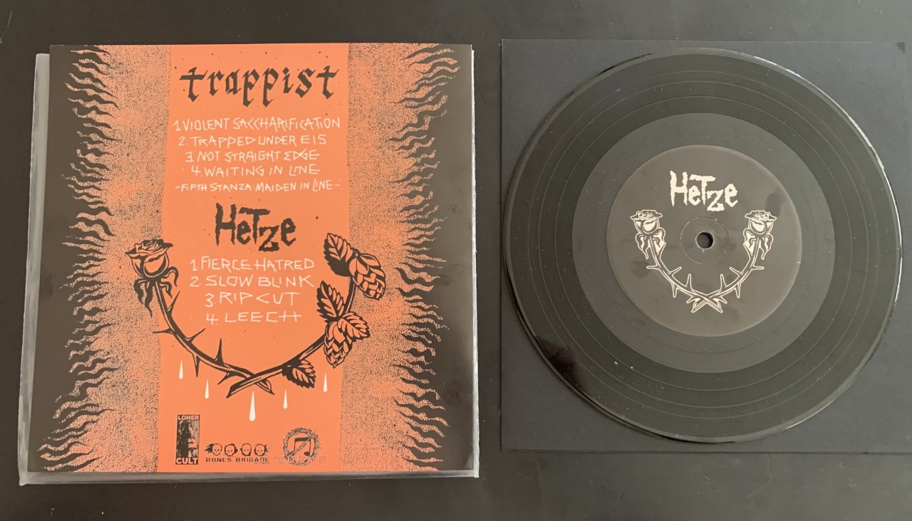 The perfect fusion of Californian experience and Belgian savoir-faire gives us an exceptional result. TRAPPIST and HETZE, subtle fermentation between punk, hardcore, and anger. You are not ready for this new sound beverage! The TRAPPIST side is is a great mash of crossover, dbeat, some Gregorian chants, and a sloppy drunk take on a Minor Threat song. HETZE have been turning heads and hit that punk and powerviolence blastbeat itch. A foamy stein of almost ten minutes to cure what ails yah. Black Vinyl