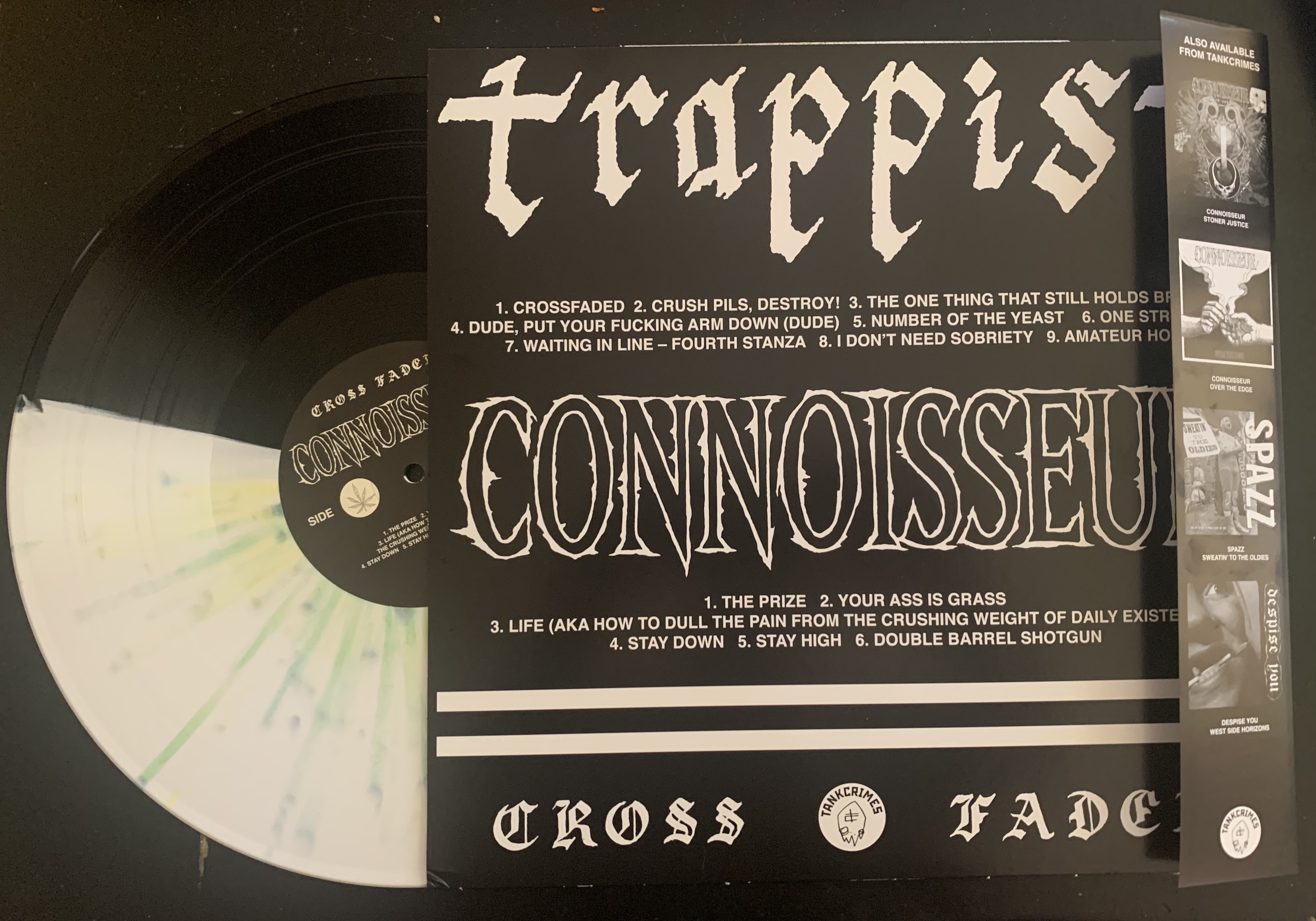 A lethal combo of fastcore, slugde, power violence and underground hardcore punk. Oakland's weed warriors Connoisseur meet Los Angeles' beer battalion Trappist (members of Spazz and Despise You). Limited to 200.